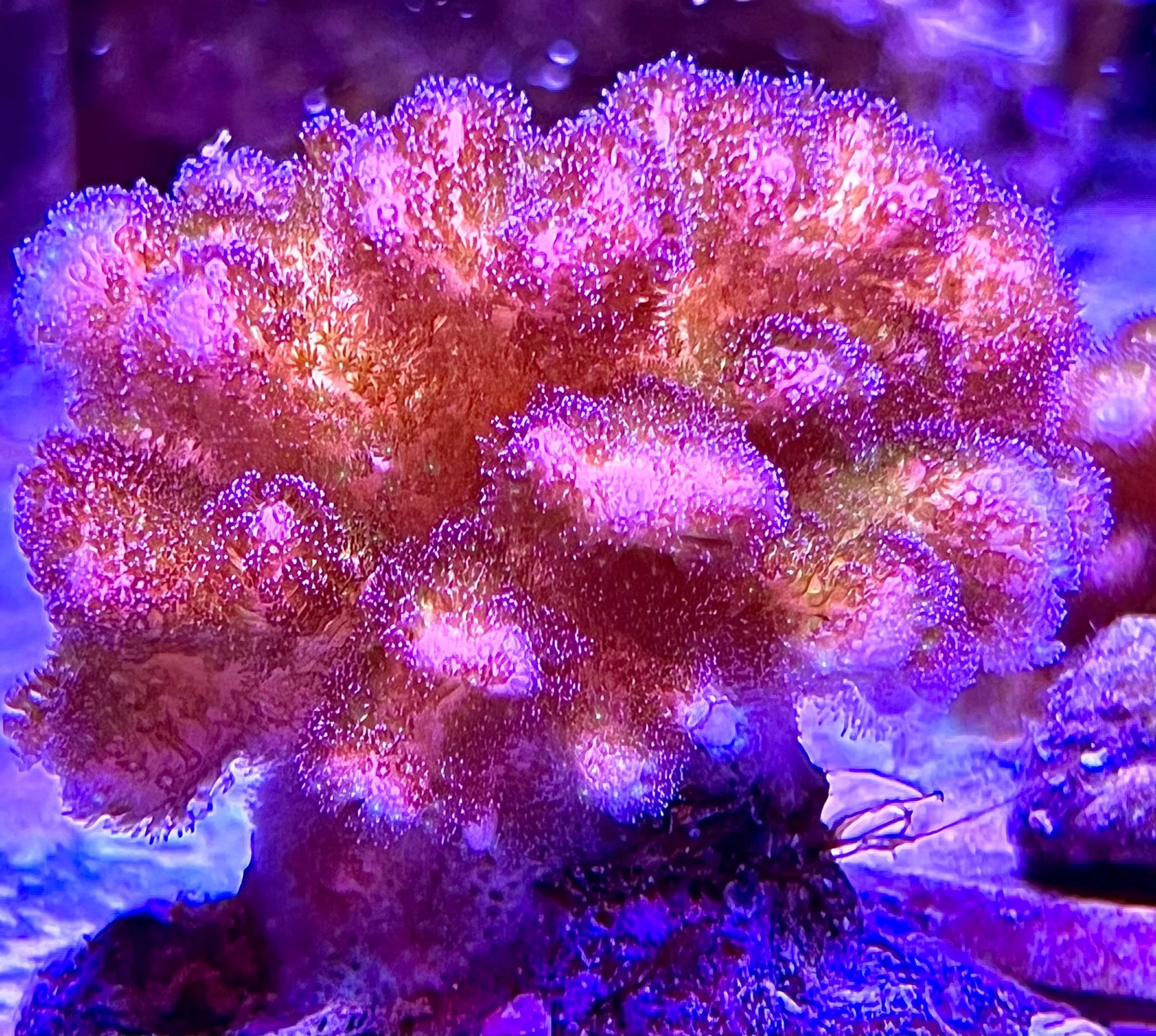 As a branching hammer coral, it grows in multiple heads over time, forming an attractive, expanding structure that adds motion, depth, and visual balance to reef aquariums. Its flowing tentacles sway gently in the current, making it a popular focal coral in both mixed reefs and LPS-dominant systems.