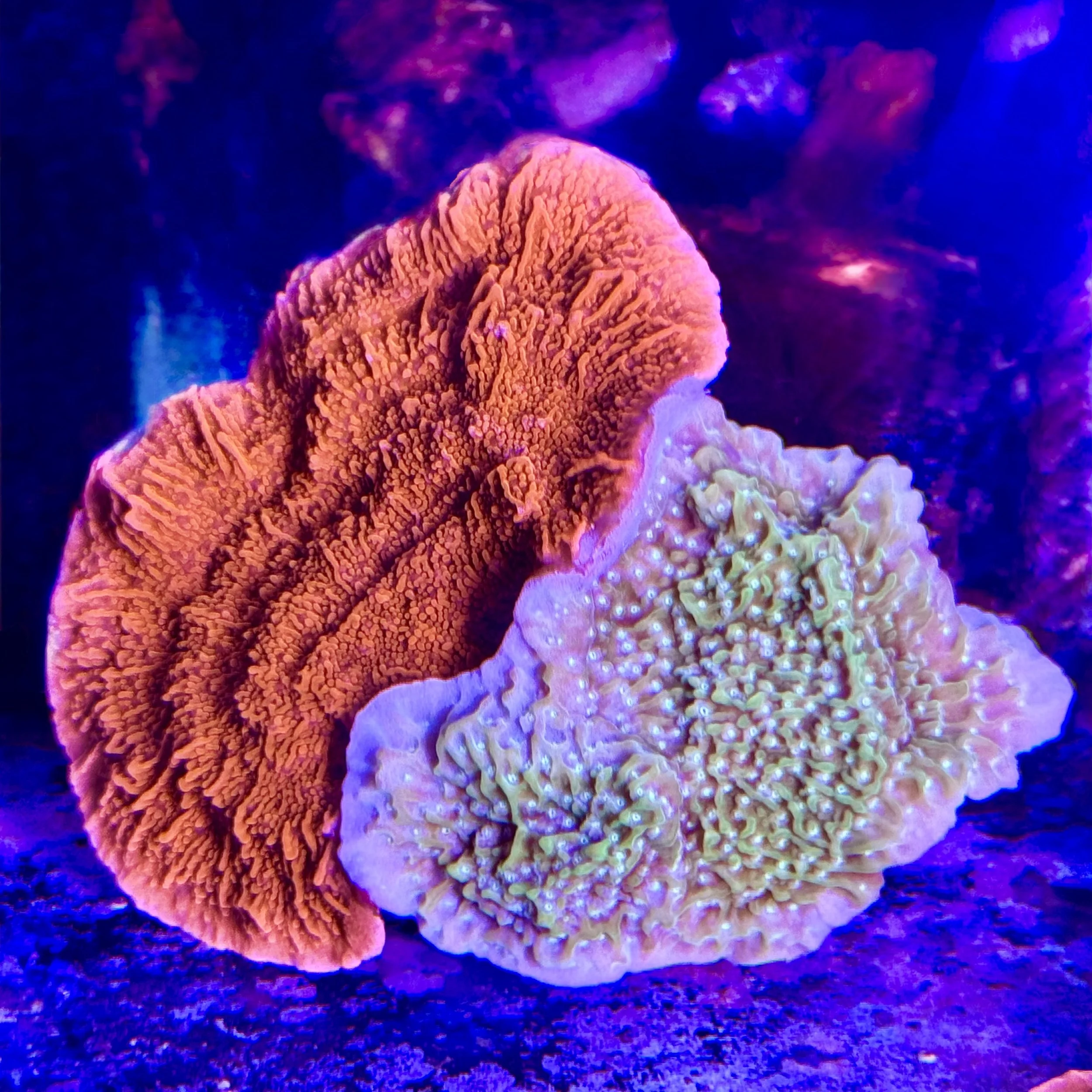 Bi-Color Green & Orange Split Montipora Coral Bi-Color Green & Orange Split Montipora Coral Bi-Color Green & Orange Split Montipora Coral Bi-Color Green & Orange Split Montipora Coral