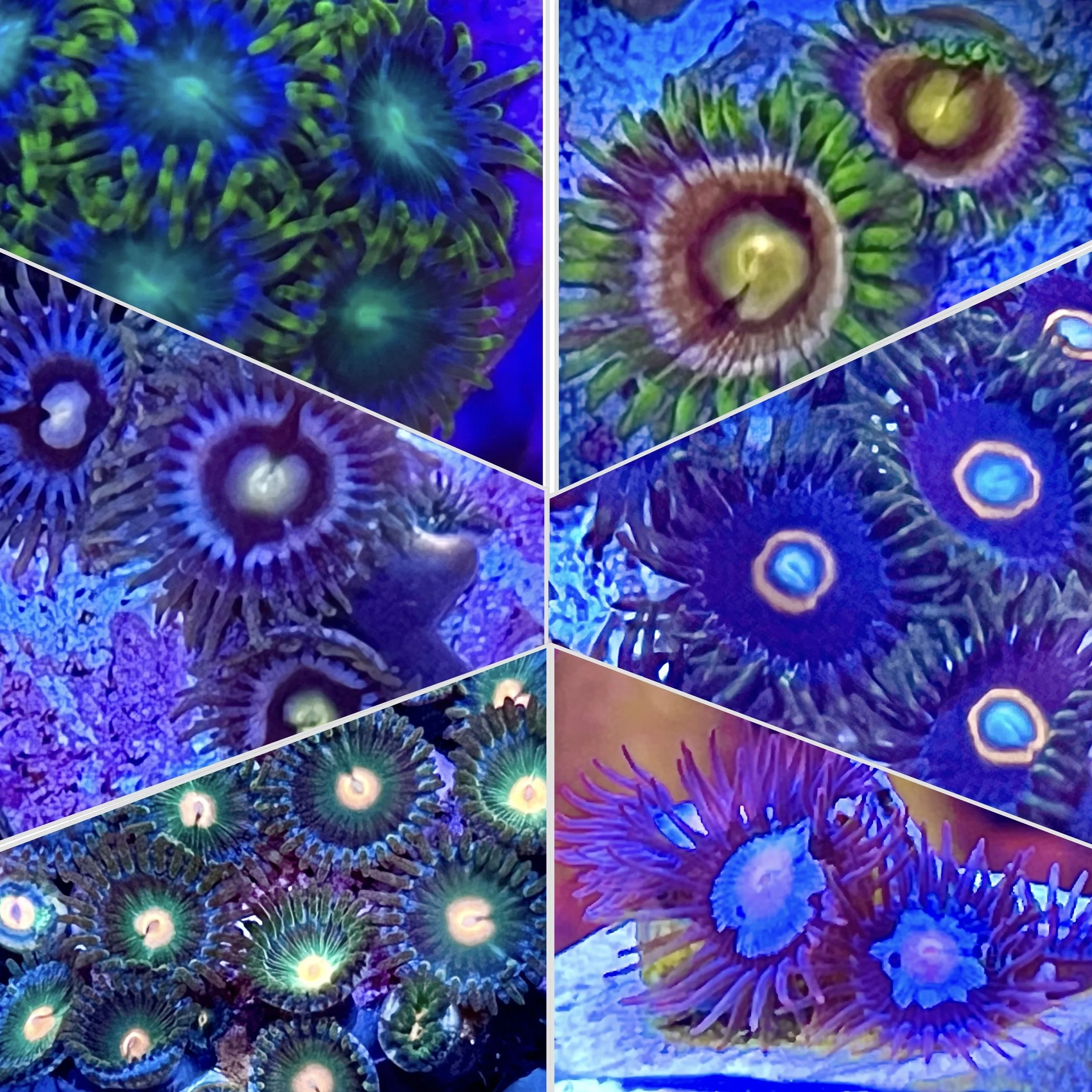 Selection: Hand-selected from our current aquacultured stock; chosen from our most plentiful and well-established colonies. Exact morphs vary; duplicates not included. Carefully created using zoanthids we have over stock, selected from our most well-established colonies.